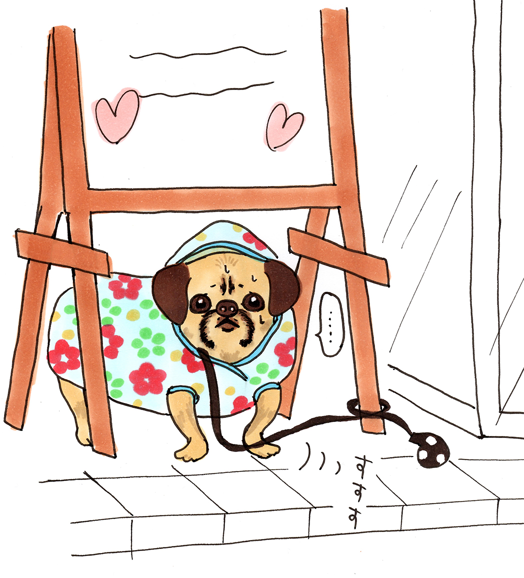 店の前にいた犬。近寄ったら後ずさり。