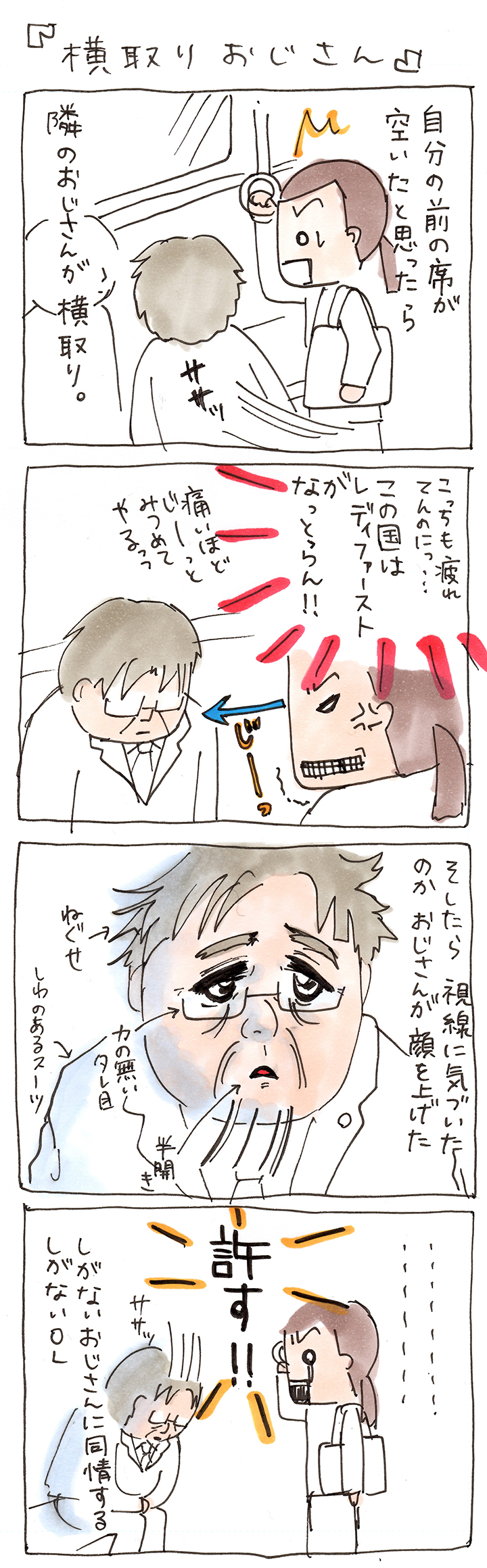 電車で化粧してる女の人はどんなに見てもこっちを見返してこない。