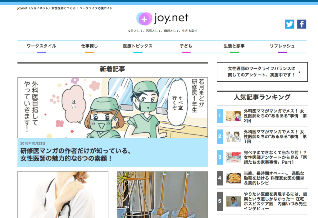 僭越ながら、joynet(ジョイネット)という女性医師向けのサイトでインタビューしていただきました。